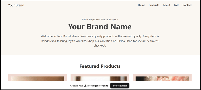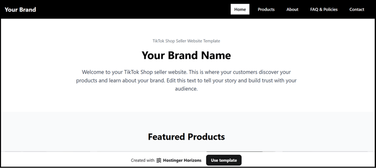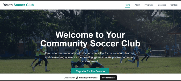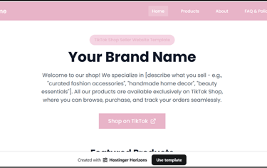 Ready-to-use website templates for TikTok Shop sellers, soccer clubs, teams, and coaches. Choose a style, view the template in Hostinger, copy it, and personalise your content. No design skills required, most users can be live within hours.