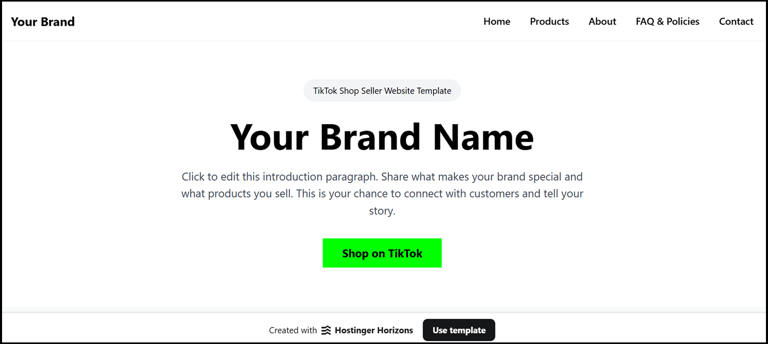 When you click View Template, the template opens directly in Hostinger. If you like the template and want to start editing it, simply click Use template to copy it to your own account, update the content, and publish your website when ready.